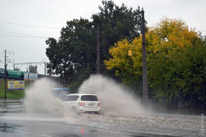 Одесские улицы снова затопило. Машинам после сильного дождя буквально пришлось плавать.