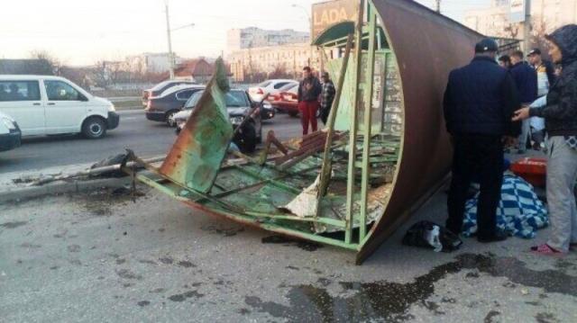Вчера в оккупированном Симферополе водитель автомобиля Volvo S40 влетел в остановку общественного транспорта, на которой находились люди.