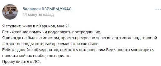 Жители Балаклеи, у которых есть доступ к интернету, устраивают "перекличку" в соцсетях, пытаются узнать информацию о местонахождении своих родных и просят помощи в плане эвакуации.