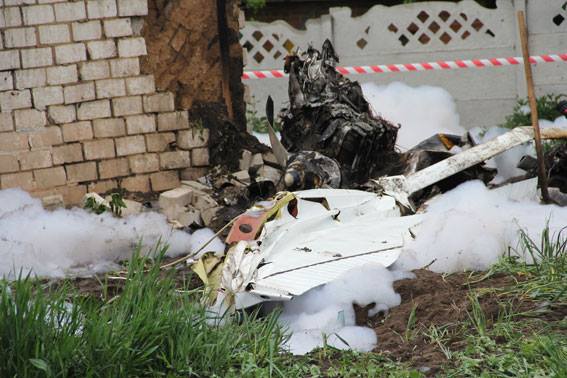 При падении воздушное судно частично повредило частный дом, расположенный в районе авиакатастрофы. Самолет задел жилой дом и загорелся.