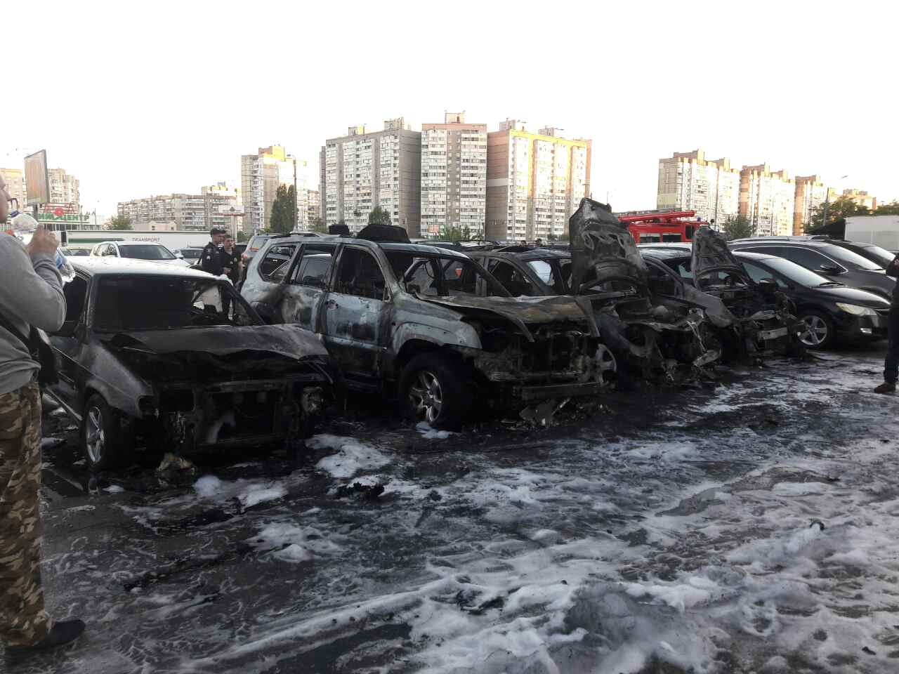 В результате пожара, автомобили «Mercedes ML 350», «Toyota Prado» и «Nissan Note» сгорели полностью. В автомобилях «ВАЗ-2114» сгорело и повреждено моторный отсек, лобовое стекло, салон и лакокрасочное покрытие, в «Toyota RAV-4» запасное колесо, задний бампер, две задние фары и лакокрасочное покрытие, в «Honda Civic »передний бампер, правая фара и лакокрасочное покрытие, в Mitsubishi Lancer» багажное отделение, два крыла, передний бампер, две задние фары и лакокрасочное покрытие, в «Toyota Corolla» лакокрасочное покрытие переднего бампера и левая передняя фара.