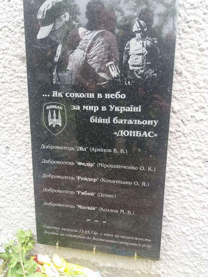 "Вчера ночью облили черной краской памятную доску в честь погибших в Карловке бойцов "Донбасса". Мы установили ее только месяц назад в Великой Новоселовке Донецкой области ...