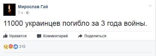 Сегодня, во время совместного выступления с президентом Беларуси Александром Лукашенко, глава государства Петр Порошенко заявил, что «каждая смерть украинского героя не должна оставаться без очень жесткой реакции». Во время телефонных переговоров в нормандском формате, которые состоятся в понедельник, президент пообещал добиваться реального обеспечения "режима тишины". Он также напомнил, что за все время агрессии погибли 11 тысяч украинских граждан.