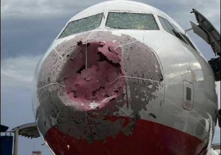 "Вчера в Стамбуле был ураган и град с куриное яйцо. Самолет турецкой компании "Atlasglobal" пилотируемый украинскими пилотами попал в град. В результате стихии полностью разбило кок, передние стекла очень пострадали. автопилот, автотраст, "Direct low". Украинский экипаж и две турецкие стюардессы проявили проявили мужество в процессе этого инцидента. Капитан посадил в слепую создал кренчик и смотрел только через форточку не открывая ее. Когда он посадил самолет аплодировал весь перрон аэропорта" Ататюрк". Пилоты других самолётов мигали фарами и просто приходили на борт пожать руку. По всем турецким каналам показывали заход на посадку и когда ребята приехали в отель то мы все и работники отеля вышли и аплодировали им. Это действительно достойно уважения.