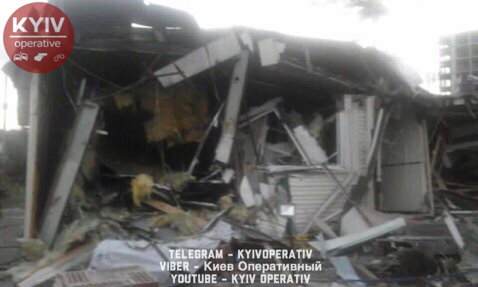 "Сегодня в Киеве, по ул. Заболотного 15д, застройщик, с помощью спецтехники, начал демонтаж фастфуда с посетителями внутри. Есть информация об одном пострадавшем.