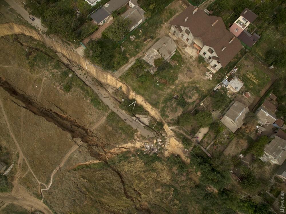 Несколько дней назад жители Фонтанки заметили, что склон начинал понемногу скользить вниз. Присмотревшись, можно было заметить несколько трещин. Обвал произошел по улице Леси Украинки вблизи домовладений.