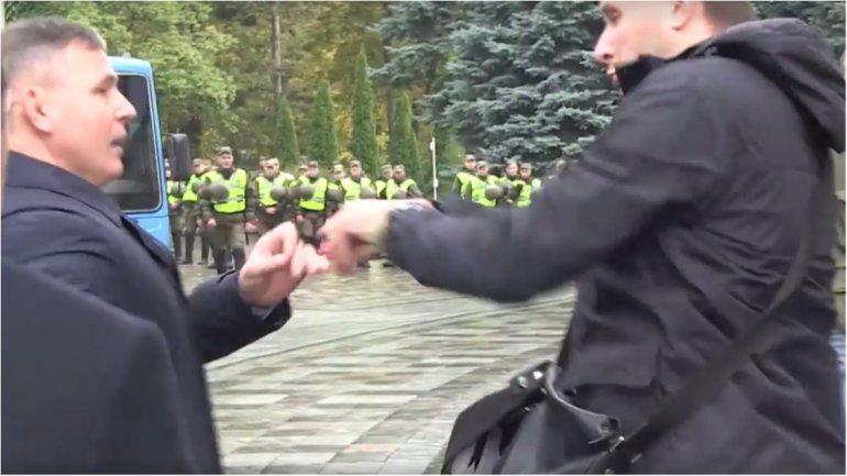 Народный депутат Владимир Парасюк подрался с начальником Управления госохраны Валерием Гелетеем прямо под стенами здания Верховной Рады Украины. Видео случившегося инцидента опубликовал на странице в Фейсбук журналист Евгений Цяпенко, передает Час Пик.