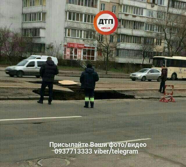 Прямо под трамвайными рельсами провалился грунт, в результате образовалась огромная яма. Движение трамваев на данном участке временно остановлено. К счастью, никто не пострадал.