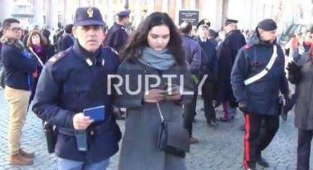 Позже в сети были обнародованы кадры с площади СанПьетро, на которых коллеги узнали Анастасию - как выяснилось, ее задержали полицейские вместе с полуобнаженной активисткой "Femen".