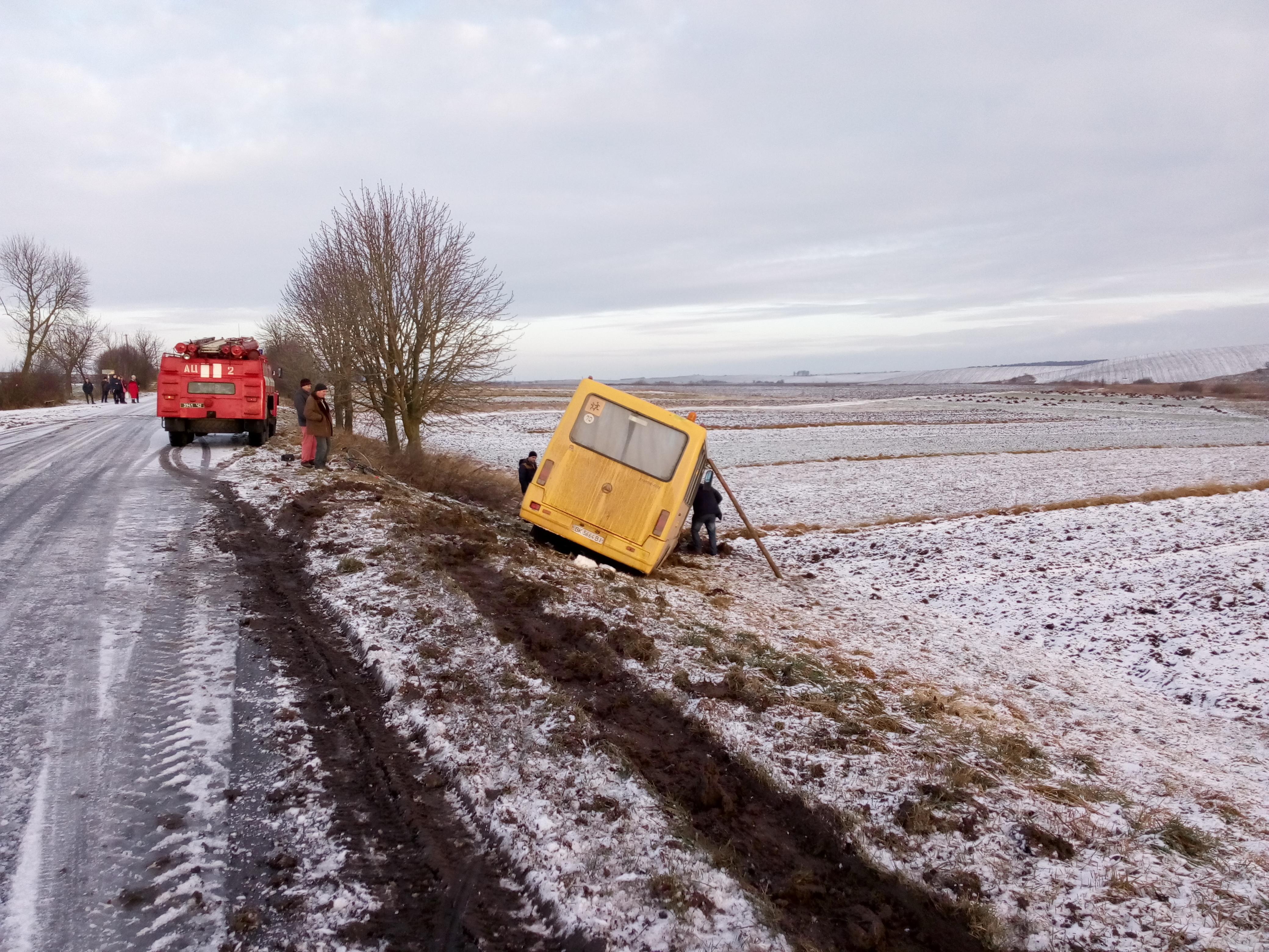 Сегодня, 31 января, в 8:05 в Службу спасения Ровенской по номеру «101» поступило сообщение о том, что между селами Шустакив и Пересопница Ровенского района съехал в кювет и почти перевернулся школьный автобус Эталон, перевозивший учеников в школу.