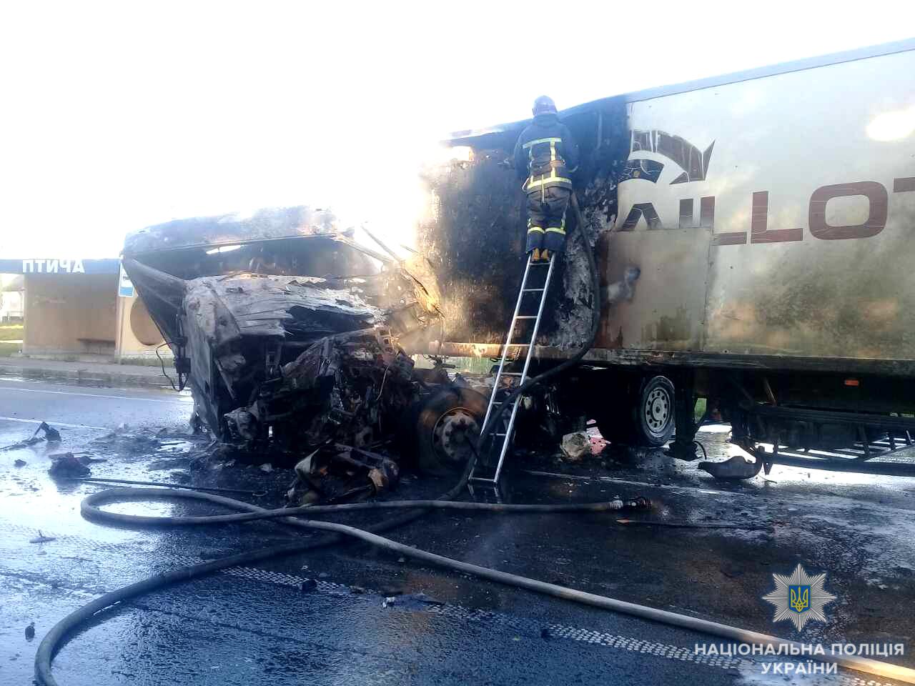 В результате столкновения грузовик «DAF» загорелся. В пожаре погиб и его водитель. Еще один водитель, 41-летний житель Житомирской области, не пострадал.