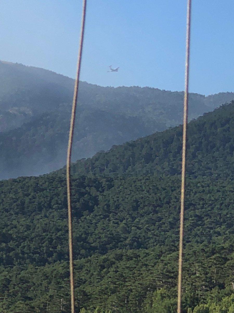 Сообщается, что самолет приземлился в Симферополе, а затем полетел к месту пожара.