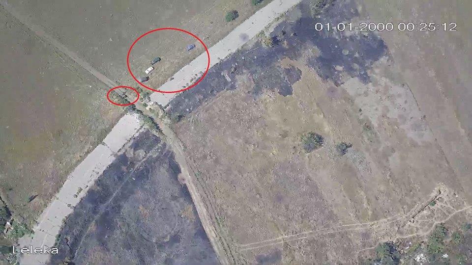 Также есть видео (см. с 00 мин. 53 сек.), на котором видно, как оккупанты собирают и вывозят на четырех машинах своих "двухсотых" и "трёхсотых", и стоп-кадр, на котором красным обведены машины и места накопления "двухсотых", - говорится в сообщении.