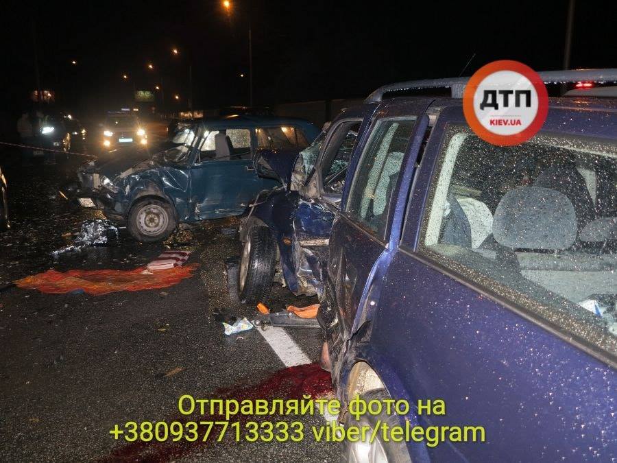 "Поломанный труп в луже крови под авто, три разбитые машины, второго нарушителя без сознания грузят в скорую. Он тоже попал под авто. На месте спасатели. Дорога перекрыта", - говорится в сообщении.