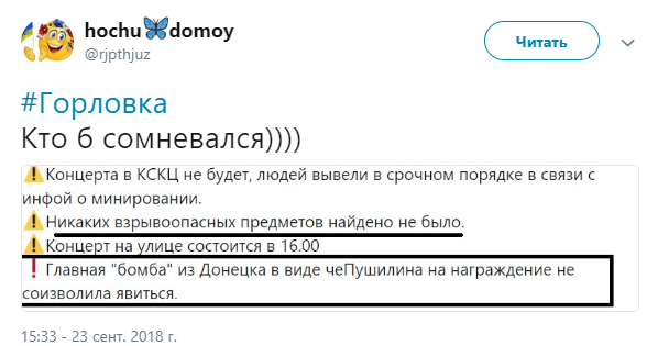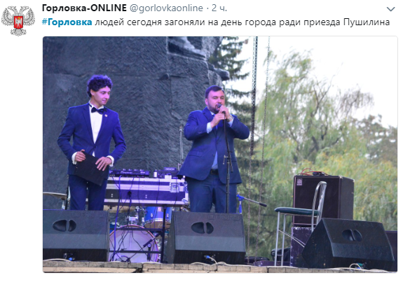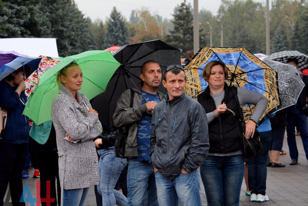 Сегодня, 23 сентября, главарь "ДНР" Денис Пушилин явился на празднование Дня города в Горловке. Массовое мероприятие, на котором выступал "глава", проводилось на улице под дождем.