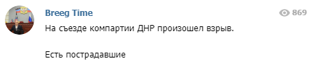 "На съезде компартии ДНР произошел взрыв. Есть пострадавшие", - сказано в посте.