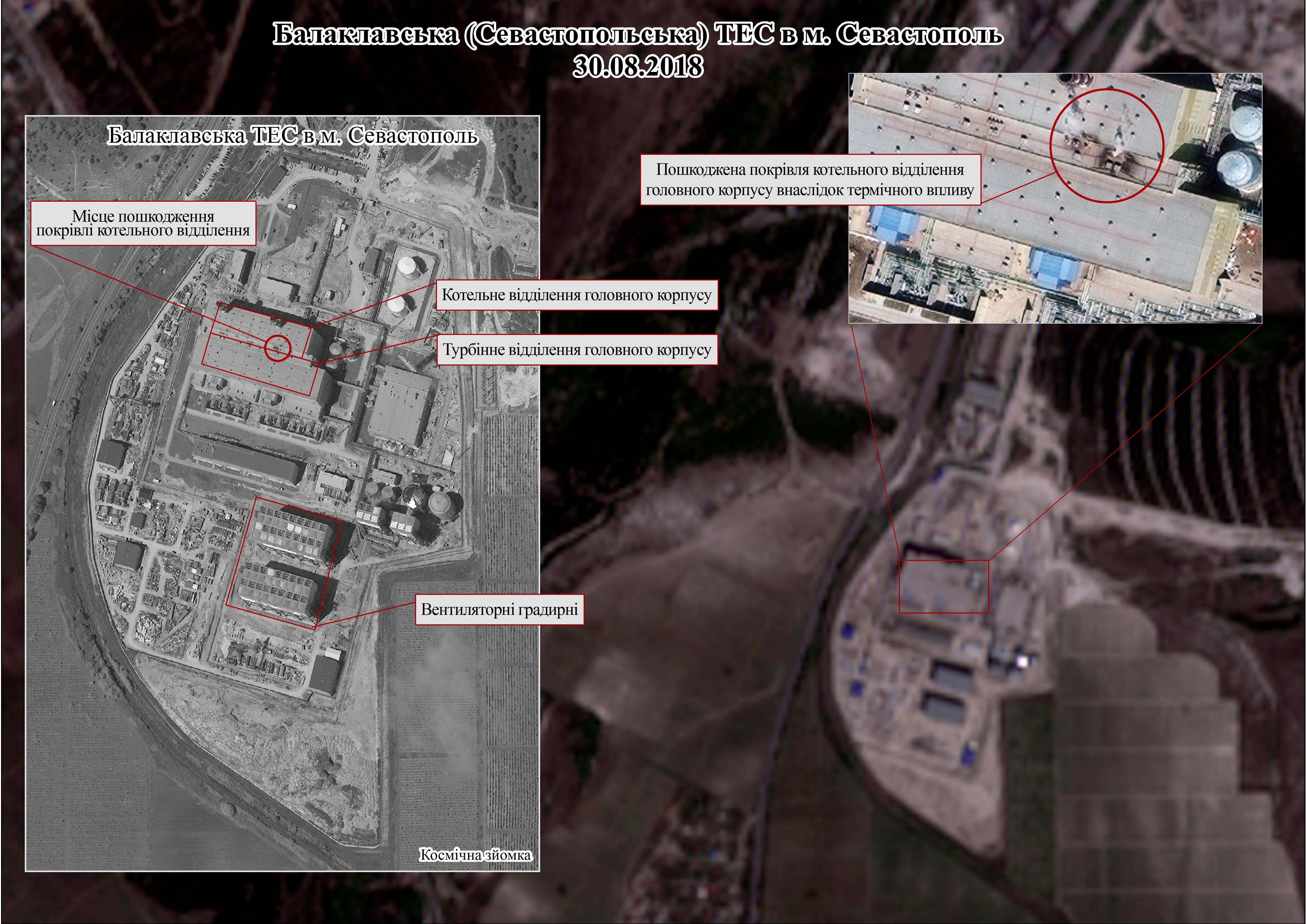 30 августа 2018 года выявлены признаки разрушения крыши одного из производственных помещений Балаклавской ТЭС, которая строится вблизи Севастополя на временно оккупированной территории АР Крым. Участок кровли крыши размерами 10х20 метров прогорел, о чем свидетельствует внешний вид разрушенной кровли и характерное задымление.