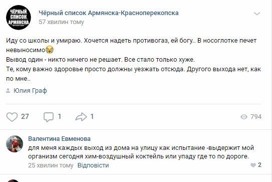 Однако местные жители не разделяют эйфории оккупационных властей по этому поводу. В социальных пабликах жители Армянска рассказывают, что со времени летних химических выбросов в городе практически ничего не поменялось: