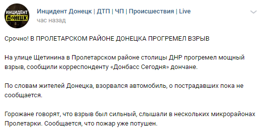 На улице Щетинина в Пролетарском районе оккупированного Донецка прогремел мощный взрыв.