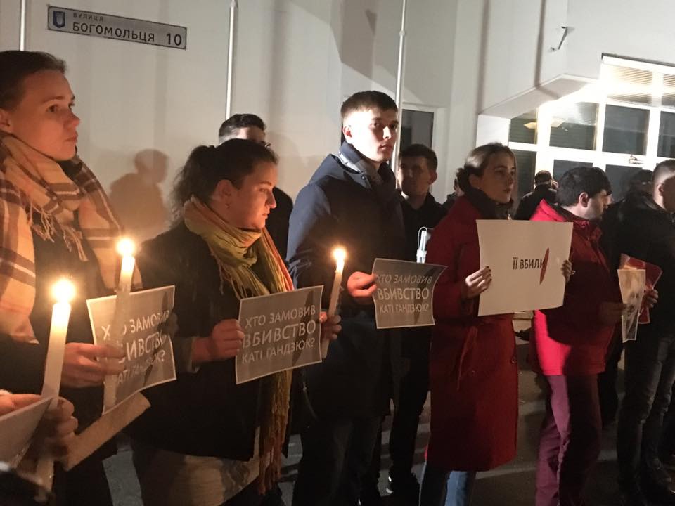 4 ноября активисты собрались в Киеве под зданием Министерства внутренних дел на акцию памяти херсонской активистки Екатерины Гандзюк, которая внезапно скончалась сегодня в больнице. Они выложили из свечей слово "убили".