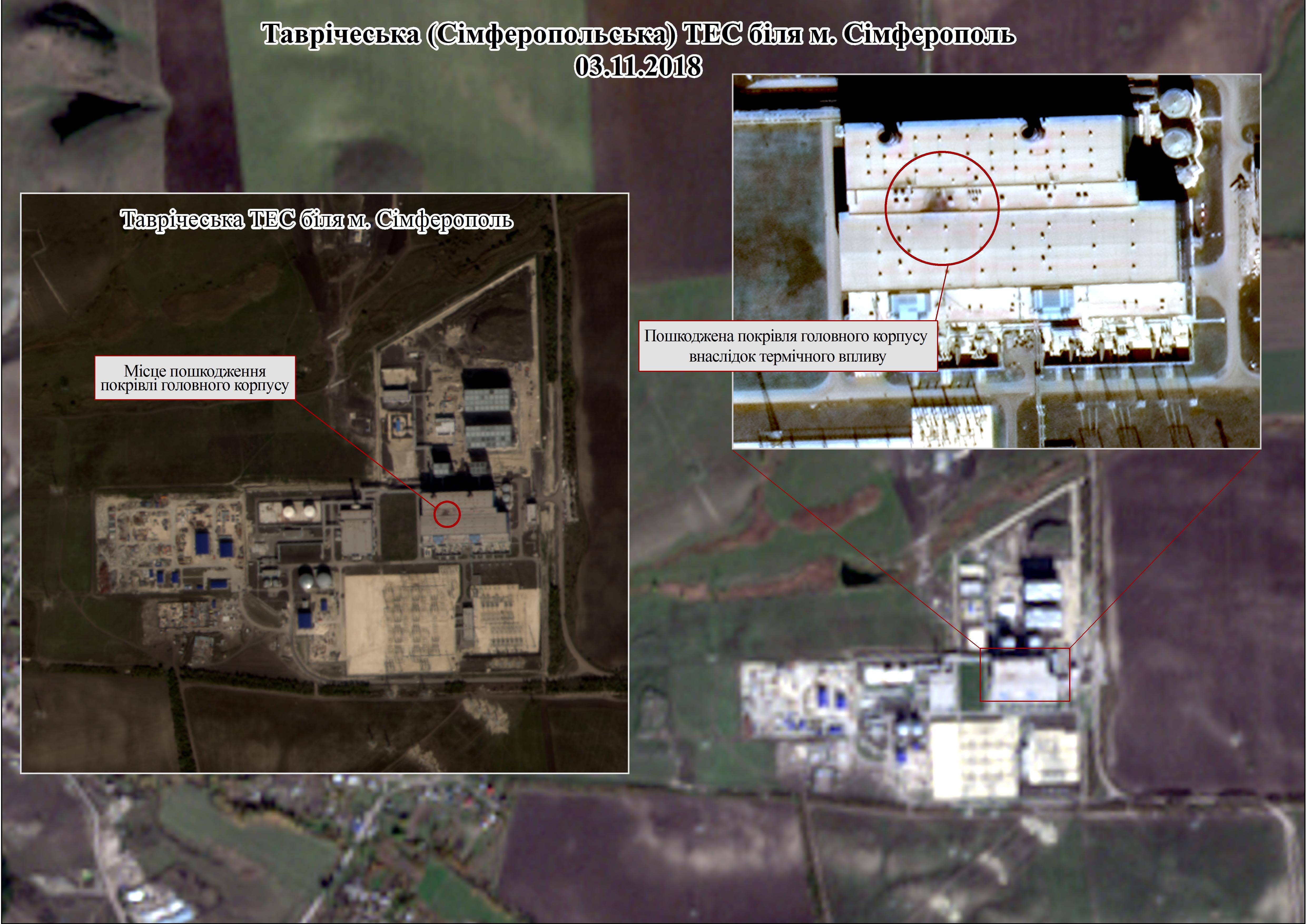 3 ноября 2018 года на крыше главного корпуса Таврической ТЭС выявлен аварийный участок с признаками повреждения кровли вследствие термического воздействия (на фото). Авария на объекте зафиксирована с помощью космической фотосъемки.