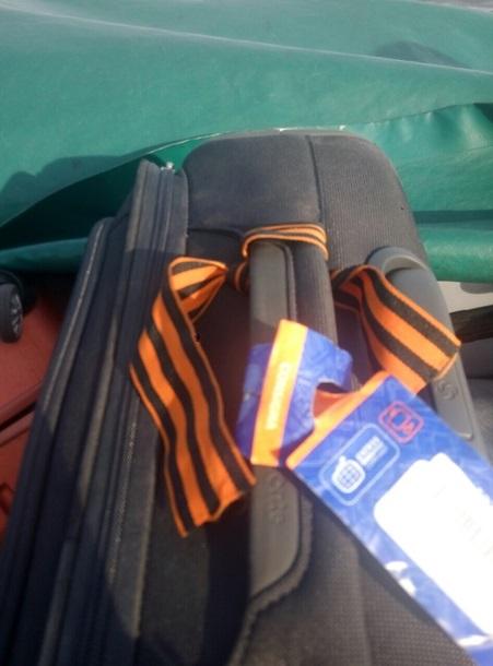 "Вчера на пункте пропуска Жуляны во время осуществления пограничного контроля авиарейса из Беларуси, пограничным нарядом обнаружено чемодан, на ручке которого содержалась антиукраинская символика, а именно - георгиевская лента", - говорится в сообщении.