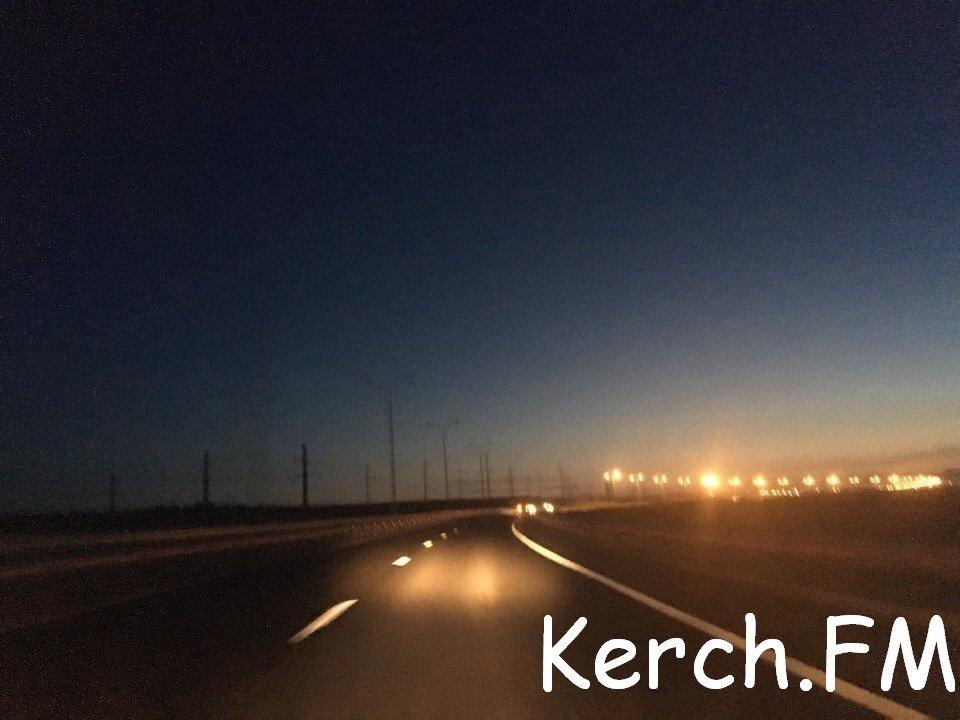 На автоподходах к построенному оккупантами Крымскому мосту (со стороны Краснодарского края) частично не работает освещение.
