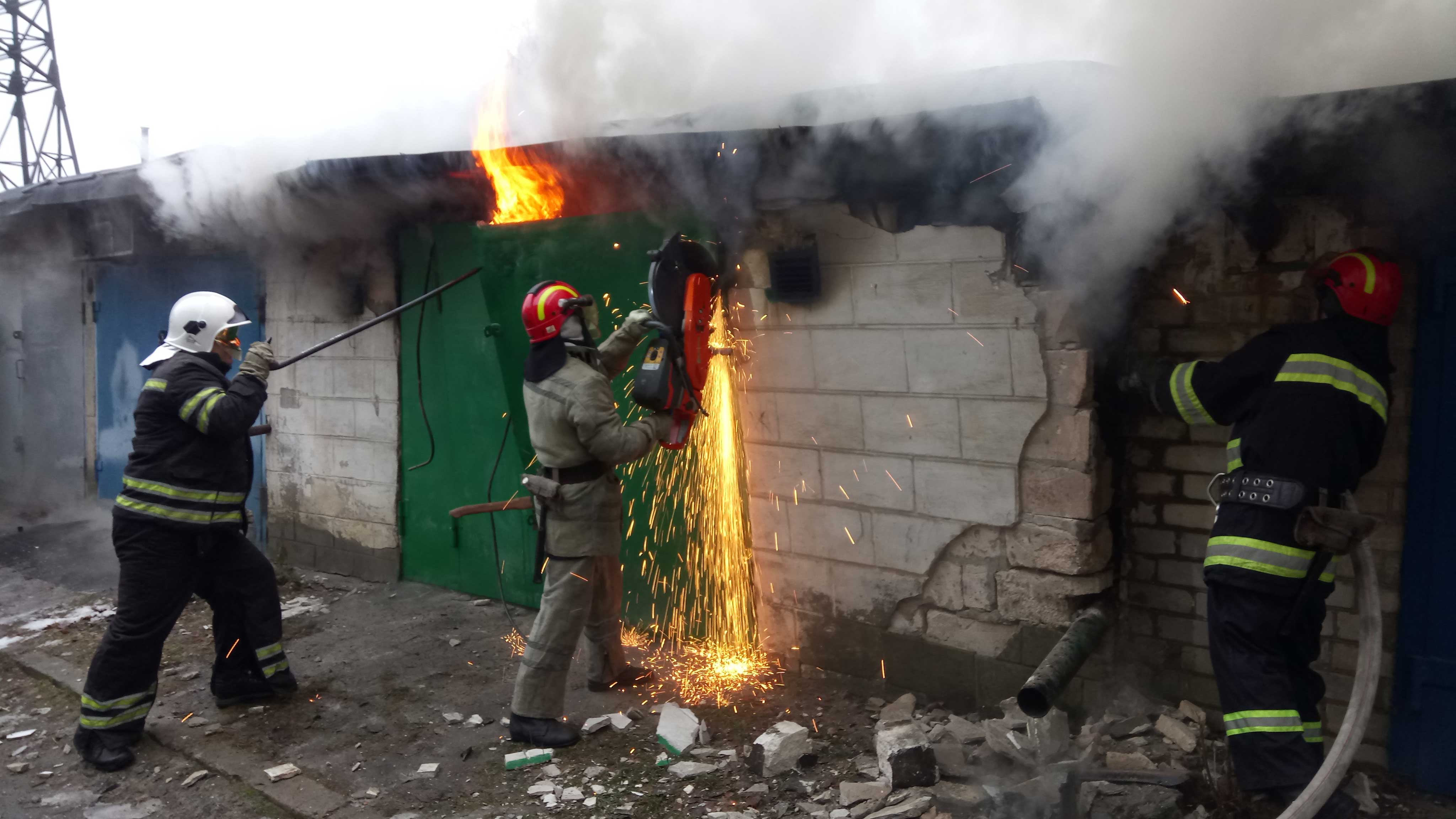 На момент прибытия пожарных на место происшествия, ворота гаража, в котором возник пожар, были закрыты изнутри. По словам соседа, внутри находится хозяин. С помощью мотореза «Huskvarnа», спасатели ГПСЧ №64 ГУ ГСЧС Украины в Луганской области срезали навесы створок ворот, вытолкали легковой автомобиль и звеном газодымозащитной службы ГПСЧ №9 эвакуировали мужчину, который находился в погребе гаража. Затем пожарные срезали навесы створок ворот соседнего гаража, из которого тоже шел дым, и подали пожарный ствол для защиты и охлаждения имущества и эвакуировали автомобиль «AUDI».