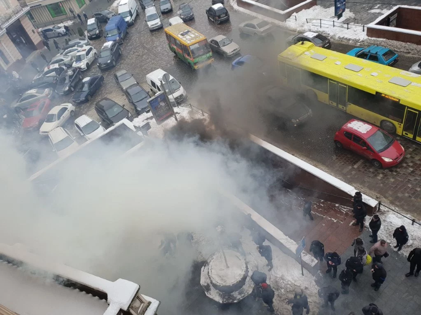 Около сотни членов разных организаций, преимущественно "Розвиток громади", "Национальный корпус" и "УСУ АТО", зажгли дымовые шашки и пытались прорваться внутрь помещения.