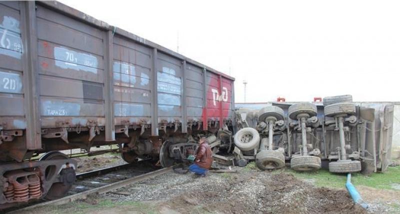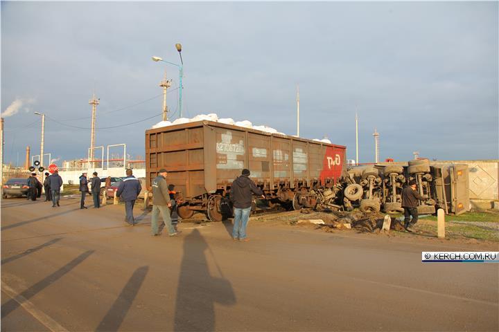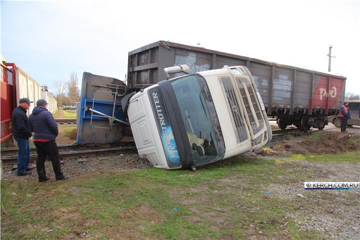 В оккупированной Керчи грузовик, который возил материалы для незаконной постройки моста через пролив, попал под поезд.