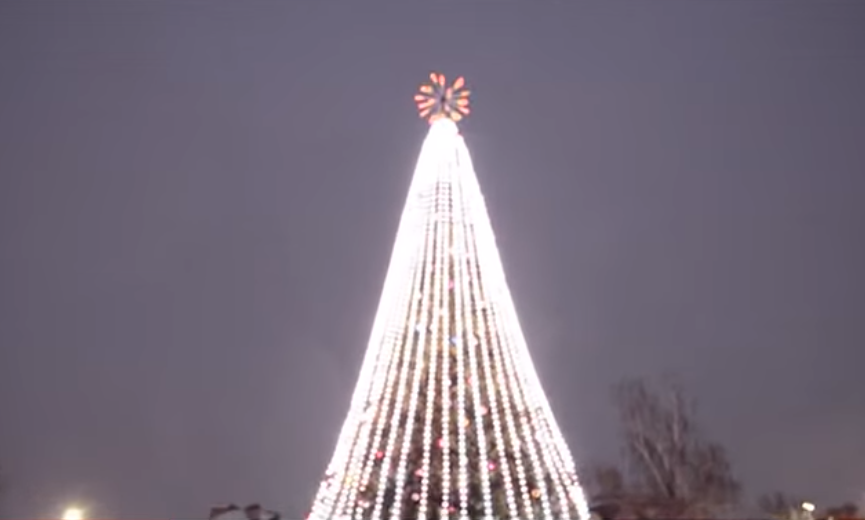 В Борисполе (Киевская область) мужчина в состоянии алкогольного опьянения залез на главную новогоднюю елку города.