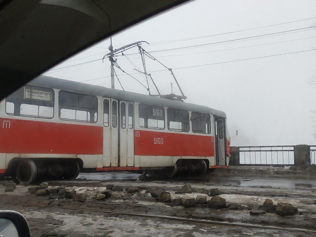 Пользователи сообщают, что сошел с рельсов трамвай маршрута №15. Никто не пострадал.