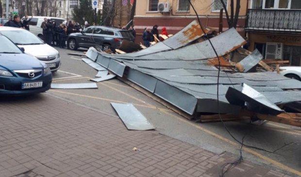 ГСЧС Украины предупредила о втором, оранжевом уровне опасности в связи с сильным ветром, который синоптики анонсировали в некоторых областях Украины. Сегодня центре Киева на улице Лысенко, 4 (станция метро "Золотые ворота"), около 13 часов мощный шквал ветра сорвал часть крыши с жилой многоэтажки и обркшил ее на дорогу и тротуар.