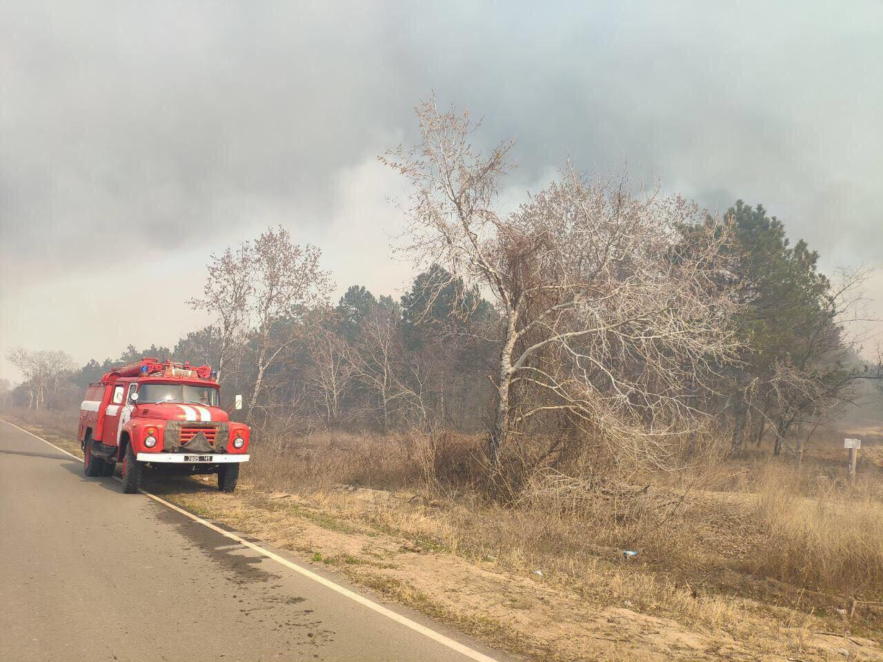 К тушению пожара привлечены 79 человек и 19 единиц техники, из них от ГСЧС - 58 человек личного состава и 12 единиц техники и самолет АН-32П, от Вилковского лесничества - 3 человека, 1 единица техники, МПК - 5 человек, 2 единицы техники, от местного населения - 3 трактора и 13 человек.