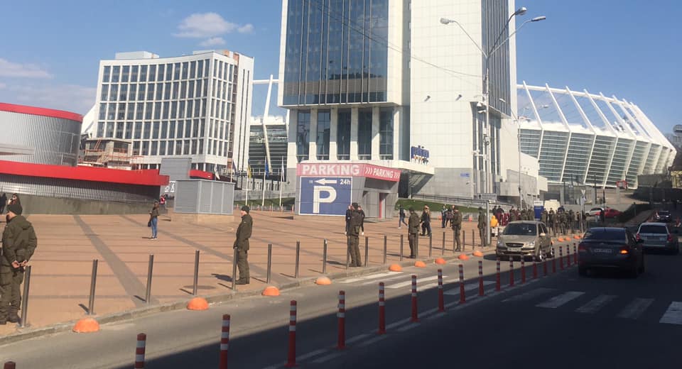 Сегодня, 4 апреля, у стадиона "Олимпийский" в Киеве дежурят военнослужащие, также очевидцы заметили задымление.