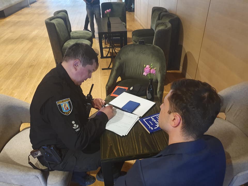 В штаб кандидата в президенты Владимира Зеленского приехали представители правоохранительных органов, чтобы выписать штраф за нарушение им избирательного законодательства.