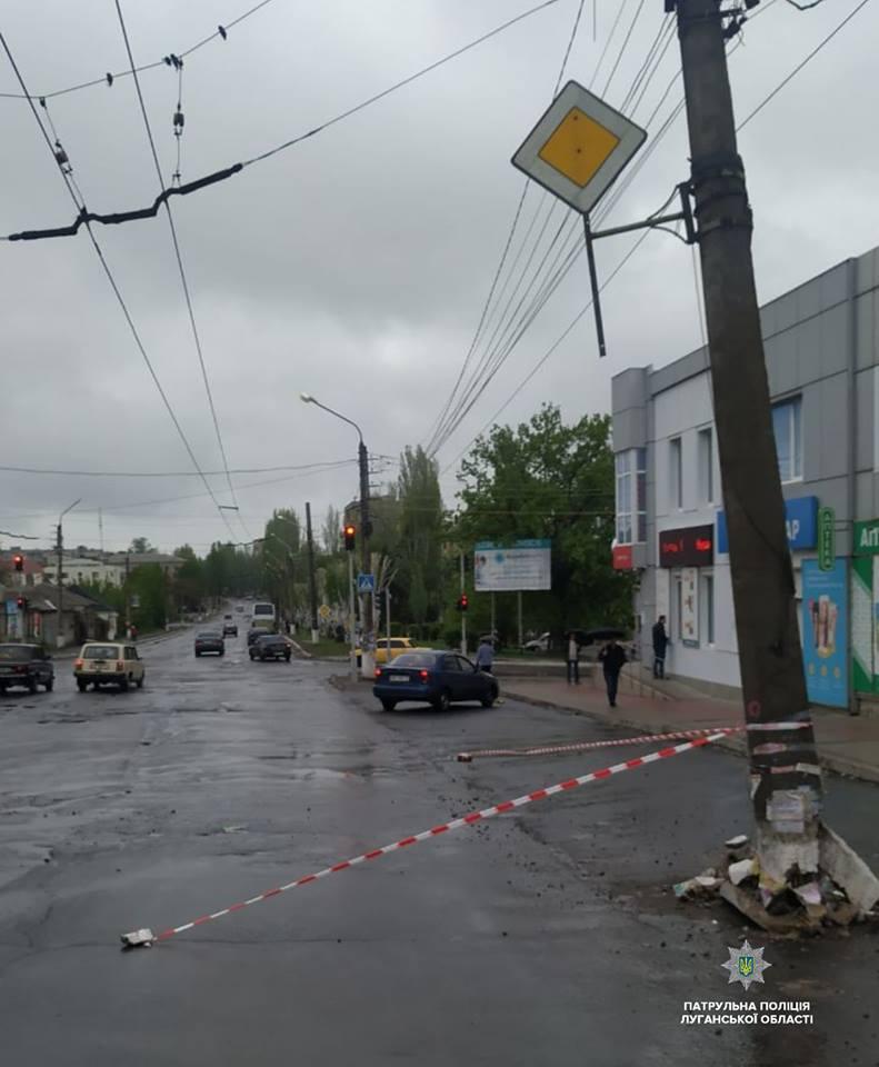 На улице Сосюры в Лисичанске Луганской области автобус врезался в электрический столб, но водитель решил покинуть место аварии.