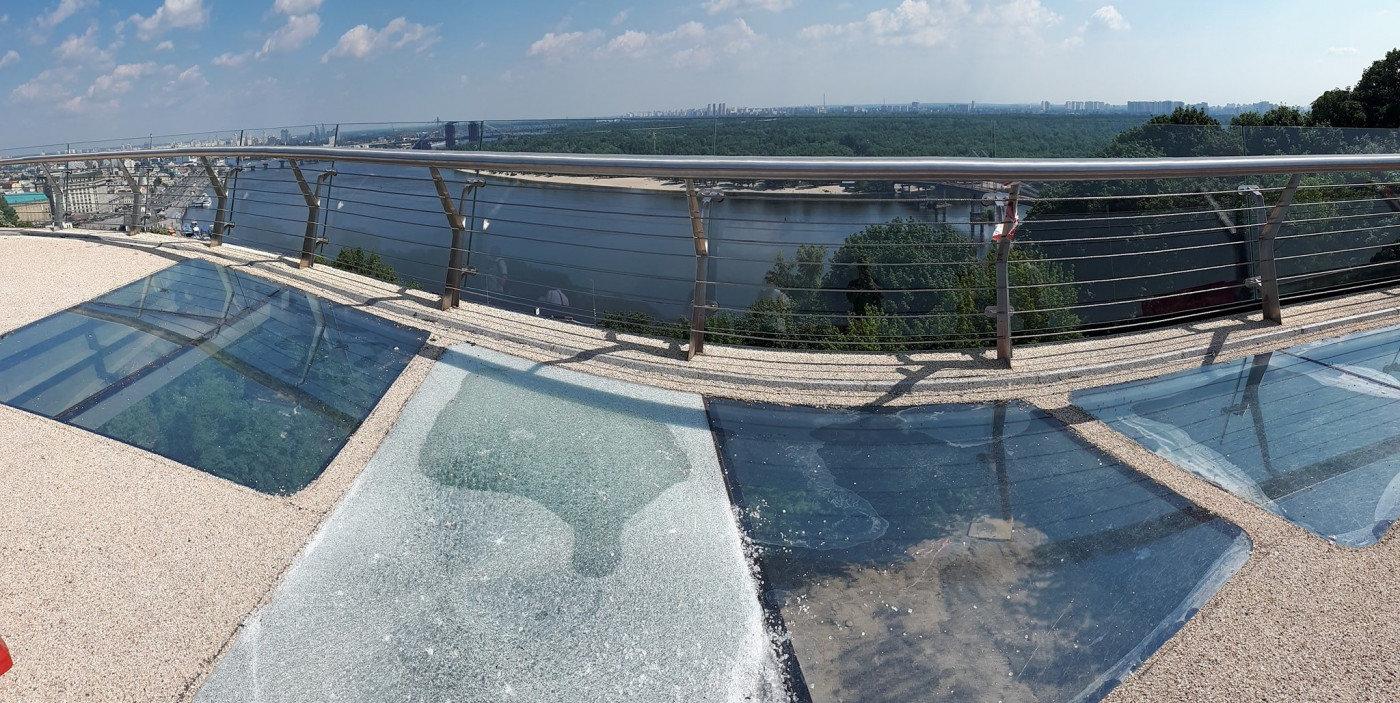 На новом пешеходно-велосипедном мосту города Киева, который соединяет парки "Владимирская горка" и "Крещатый", во время замены поврежденного стекла треснуло еще одно.