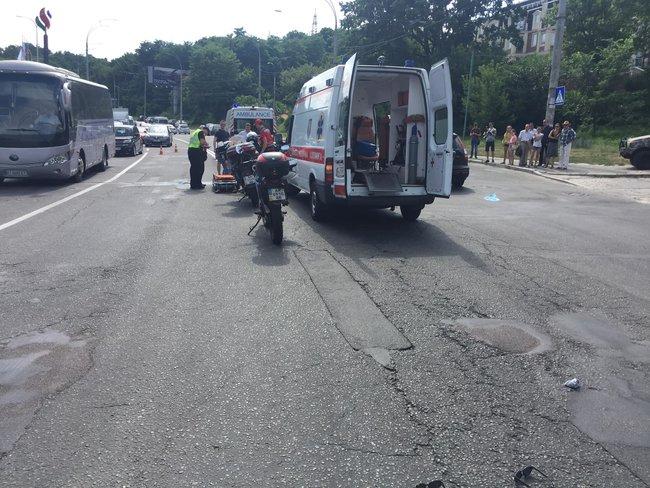 На Протасовом Яру в Киеве водитель на "Volkswagen" совершил наезд на женщину и ребенка, которые находились на пешеходном переходе.
