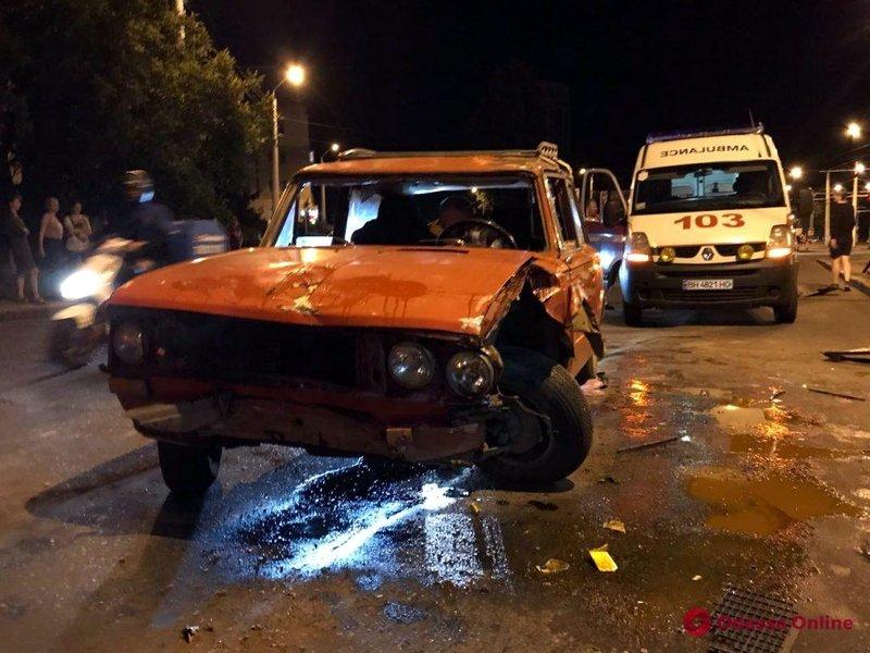 В центре Одессы автомобиль "ВАЗ", за рулем которого находился пьяный водитель, влетел в ограждение трамвайной остановки, на которой находились люди. В результате ДТП пострадало два человека.