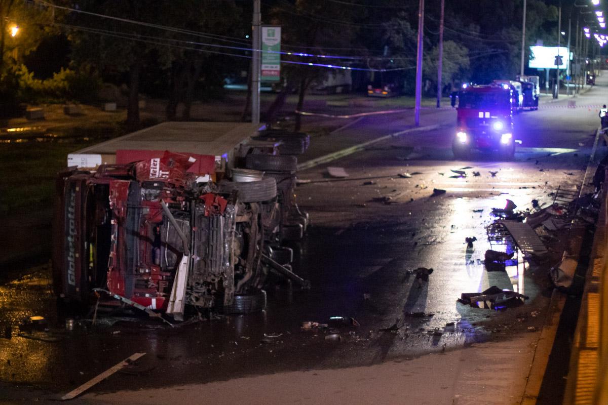 В Киеве произошло дорожно-транспортное происшествие с участием многотонной фуры. После ДТП вся дорога была залита горючим из бака.