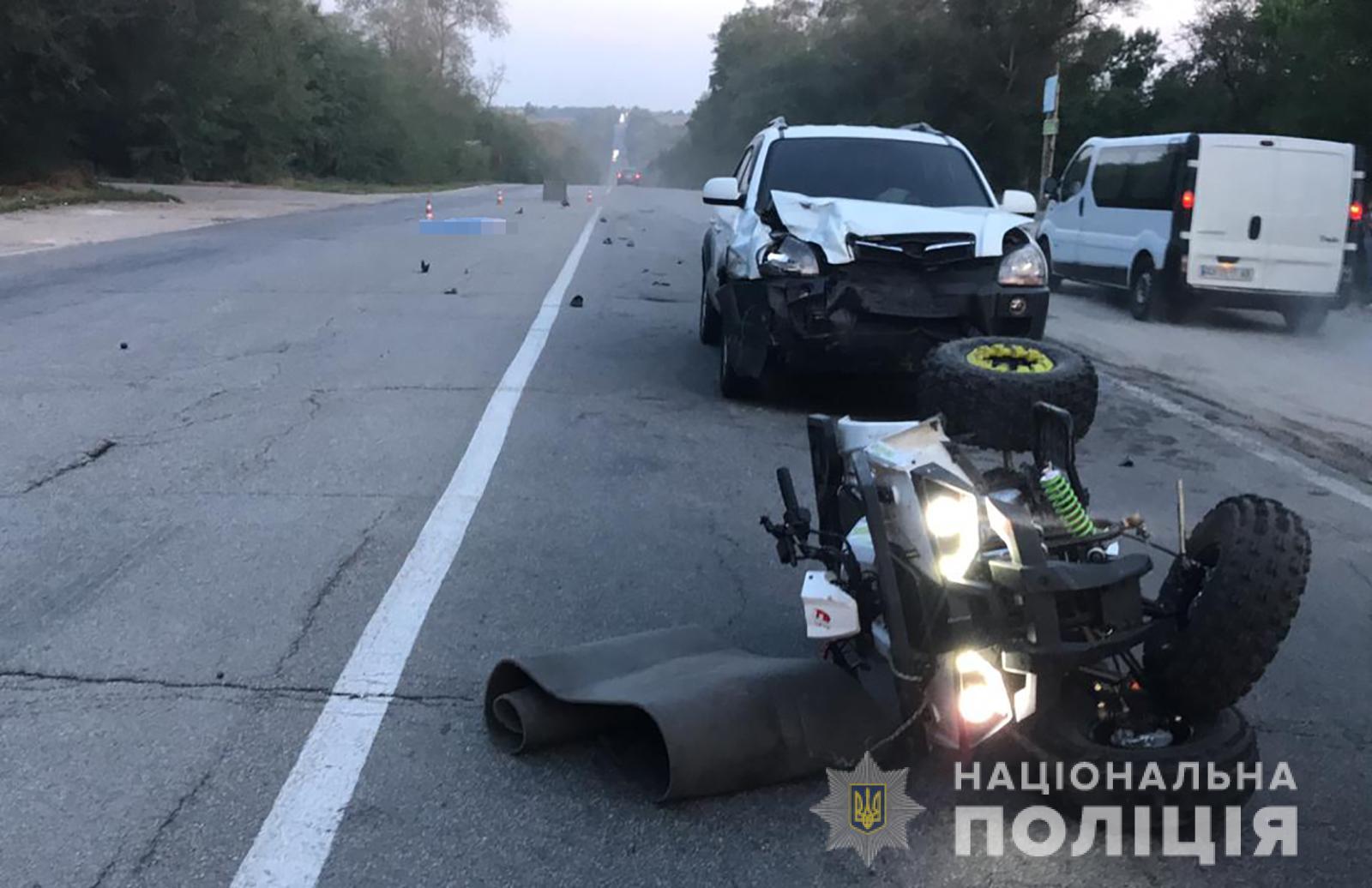 В городе Запорожье водитель квадроцикла на перекрестке не предоставил преимущество в движении и допустил столкновение с легковым автомобилем. От полученных телесных повреждений пассажир квадроцикла скончался на месте происшествия, его водитель – в больнице.
