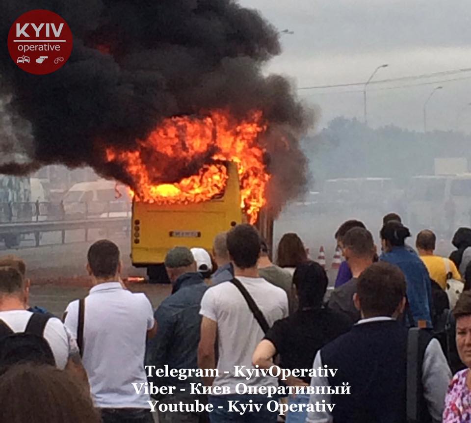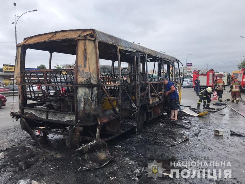 Утром в Деснянское управление полиции поступило сообщение о том, что на Броварском проспекте, возле станции метро «Лесная», горит маршрутка. На место происшествия выезжали спасатели, патрульные полицейские и следственно-оперативная группа территориального управления полиции.