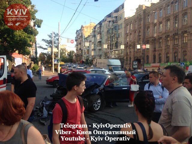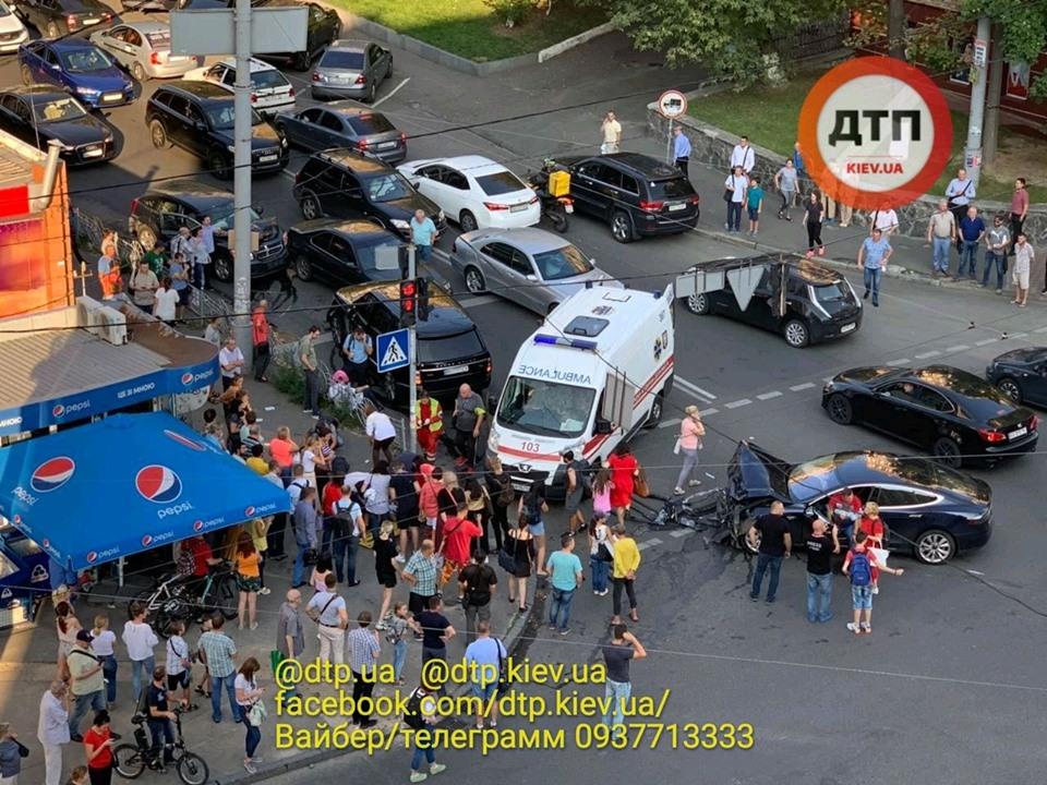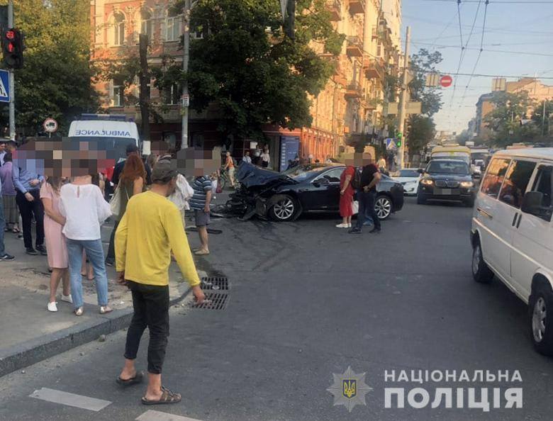 Авария произошла на перекрестке улиц Саксаганского и Льва Толстого: столкнулись два автомобиля. В результате пострадали пешеходы и водитель «Tesla». На месте происшествия работает следственно-оперативная группа и патрульные полицейские.