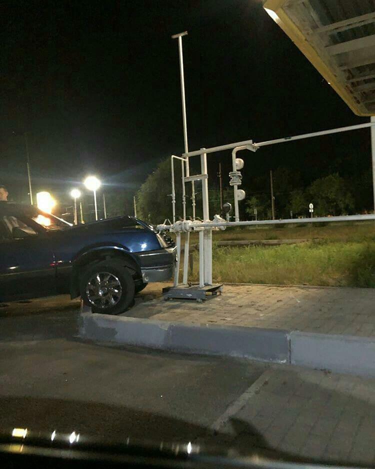 "Теперь столкновение не с другим авто, а с газозапрвкой, что очень даже опасно", - говорится в посте.