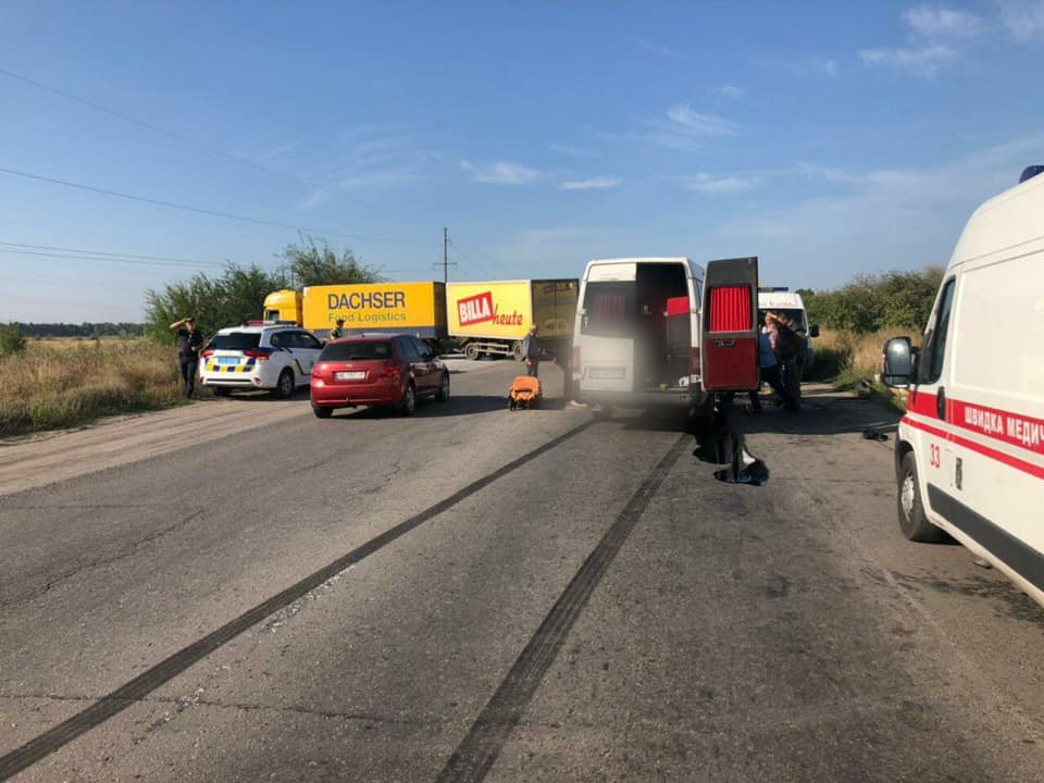 В результате столкновения микроавтобуса «Мерседес Бенц» с автомобилем «ДАФ» 10 человек были травмированы и доставлены в городскую больницу г. Каменское.