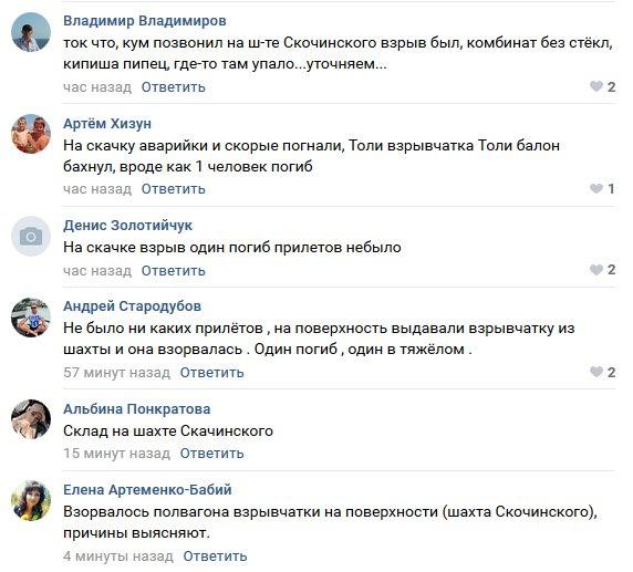 По словам пользователей, на угольной шахте имени Скочинского, что находится в Кировском районе Донецка, произошла детонация взрывчатки. Есть информация о как минимум одном погибшем. На место прибыли "скорые" и спасатели.