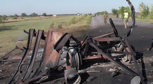 В одном из грузовых прицепов из колонны военной техники произошло возгорание, а впоследствии – несколько взрывов. Известно, что в упомянутом прицепе перевозились горюче-смазочные материалы и конструктивные элементы защитной динамической брони, которые в результате взрыва были полностью уничтожены, что повлекло ущерб в крупных размерах.