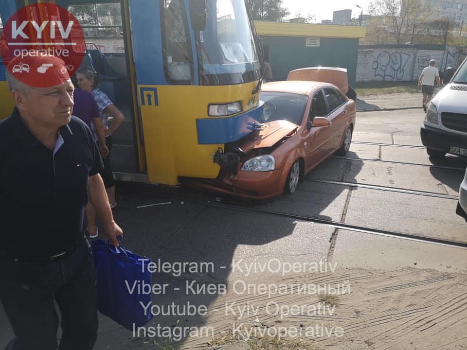 В среду, 11 сентября, на Карельском проулке в Киеве произошло дорожно-транспортное происшествие с участием автомобиля Chevrolet и трамвая.