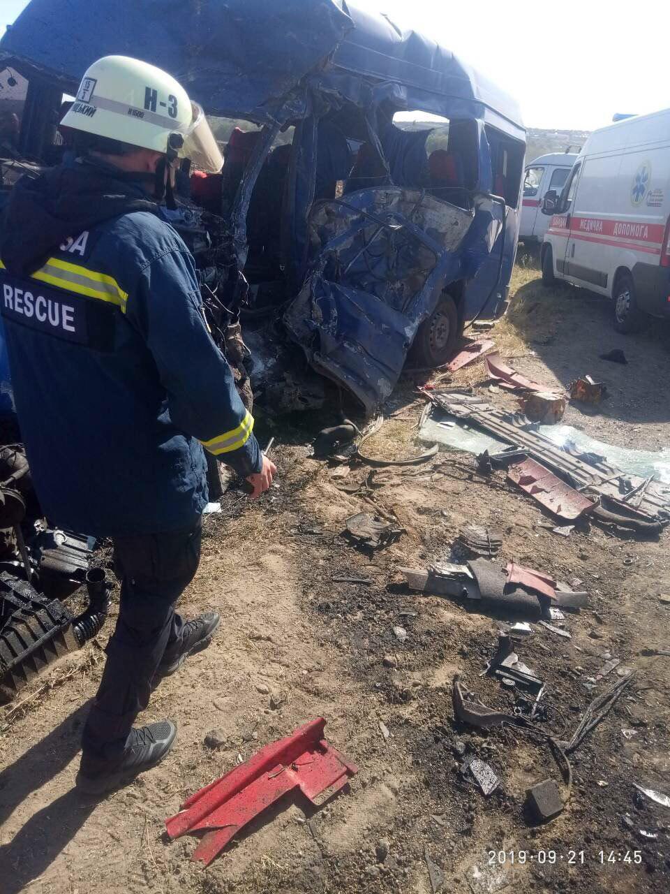 В результате столкновения переполненной людьми маршрутки, следовавшей в Одессу, и грузовика, который возвращался из областного центра, предварительно погибли девять человек, еще трое - травмированы.